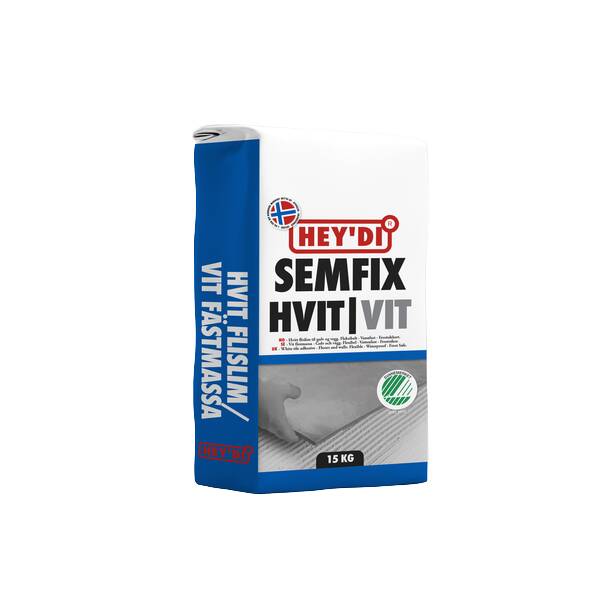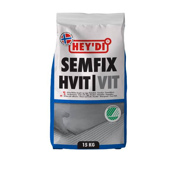 Heydi Semfix er et hvitt, sementbasert, plastforsterket flislim i pulverform som blandet med vann herder til en vannfast og frostsikker limfuge med høy vedheft og god fleksibilitet. Fleksibelt - Vannfast - Frostsikkert.
